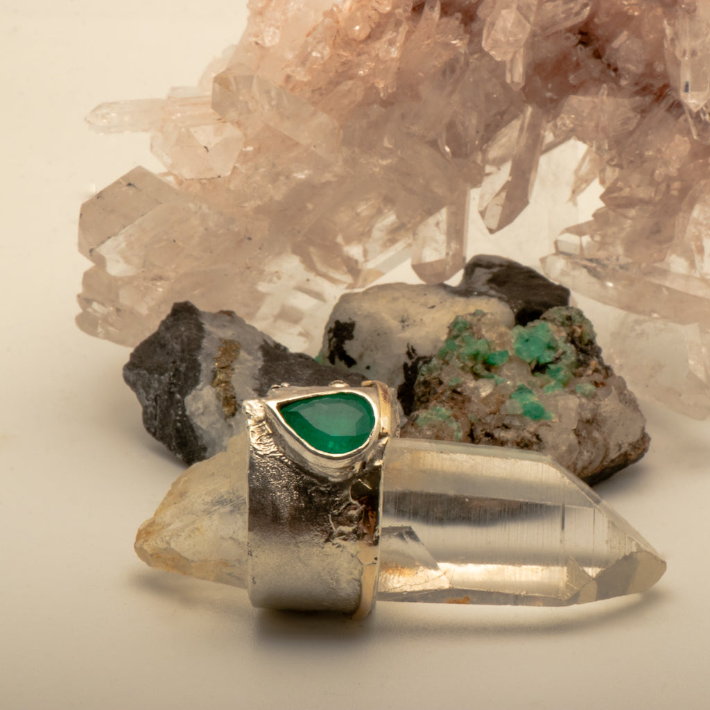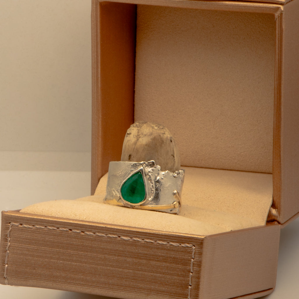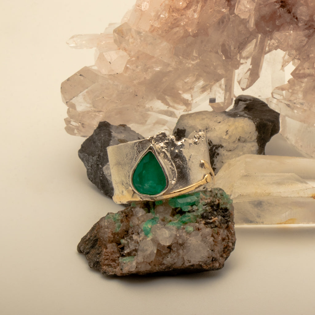Compuesto por:Anillo de plata con incrustaciones de oro, acompañado de 1Esmeralda Colombiana de calidad comercial (2.030) CTs